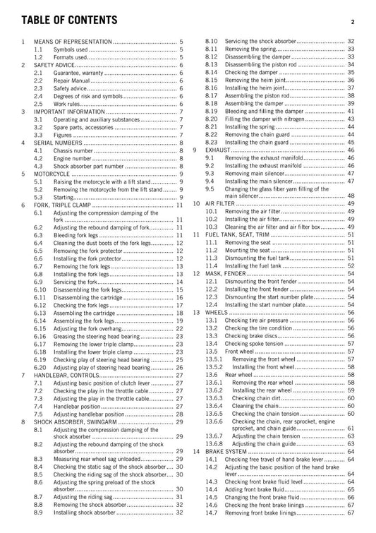 KTM 2005 TO 2011 -250 SX-F EXC-F SIX DAYS XCF-W XC-F SXS-F - WORKSHOP SERVICE