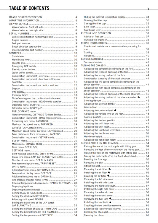 KTM 2011 - 1 190 RC8 R TRACK - OWNERS MANUAL USER GUIDE