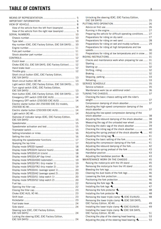 KTM 2011 - 125 200 250 300 EXC FACTORY EDITION XC-W - OWNERS MANUAL USER GUIDE