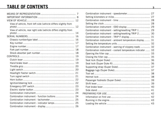 KTM 2011 - 990 SUPER DUKE R - OWNERS MANUAL USER GUIDE