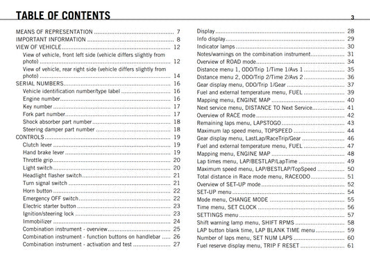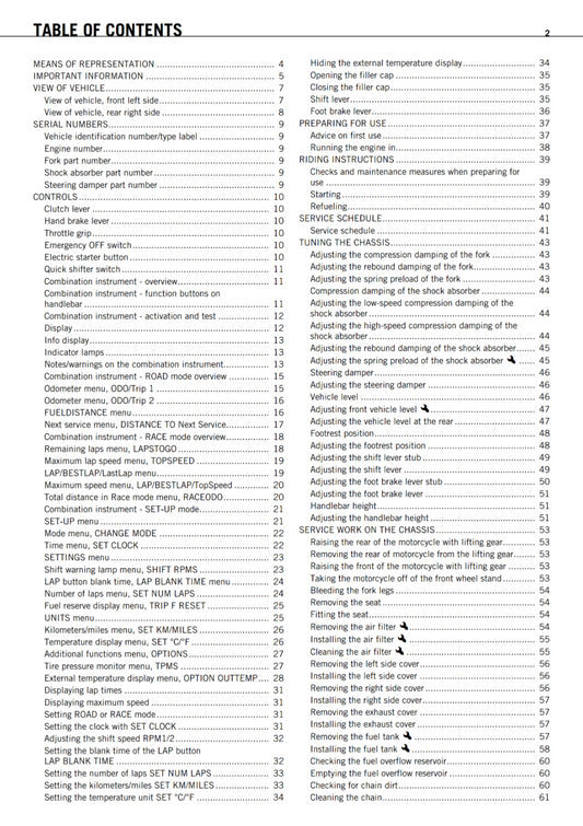 KTM 2012 - 1190 RC8 R TRACK - OWNERS MANUAL USER GUIDE