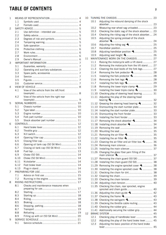 KTM 2013 - 50 SX MINI - OWNERS MANUAL USER GUIDE