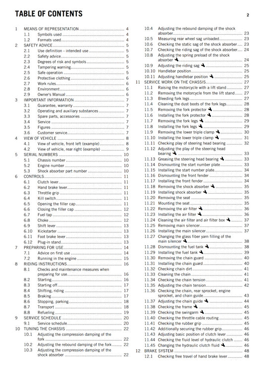 KTM 2013 - 65 SX - OWNERS MANUAL USER GUIDE