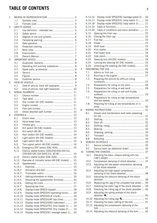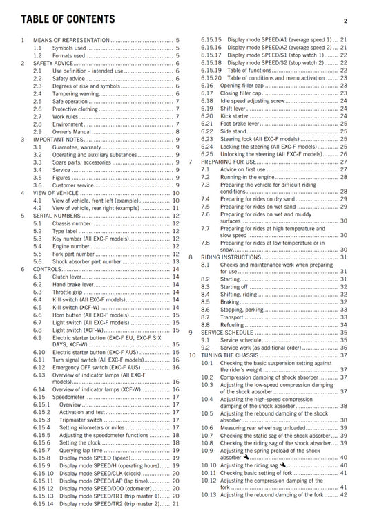 KTM 2013 - 250 SX-F XC-F - OWNERS MANUAL USER GUIDE