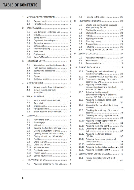 KTM 2020 - 50 SX MINI - OWNERS MANUAL USER GUIDE