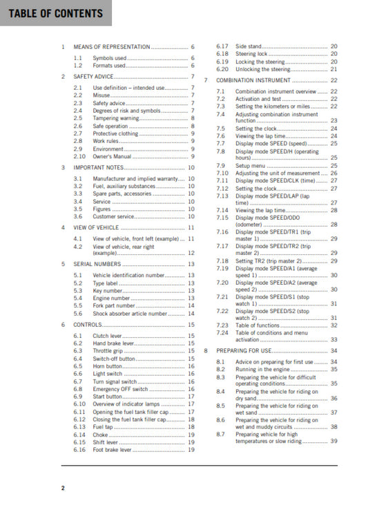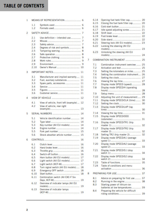 KTM 2020 - 300 EXC - OWNERS MANUAL USER GUIDE