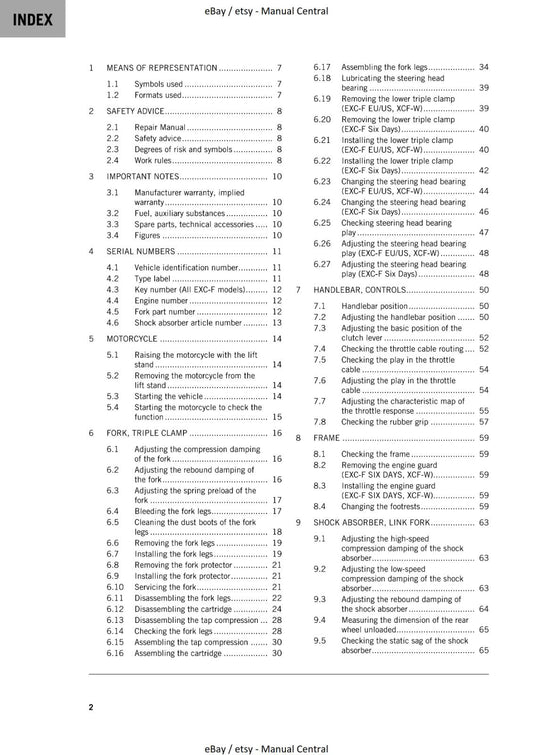 KTM MOTORCYCLE 2023 - 250 EXC-F SIX DAYS - WORKSHOP SERVICE - REPRINT