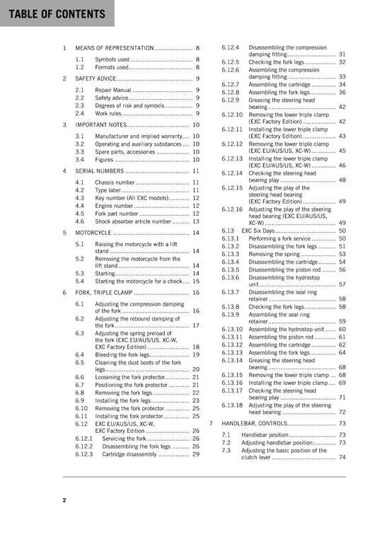 KTM 2016 - 125 200 EXC XC-W - WORKSHOP REPAIR SERVICE MANUAL REPRINTED