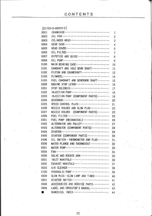 KUBOTA D1703-EB-DENYO-6 PARTS MANUAL REPRINTED FROM SCAN COMB BOUND