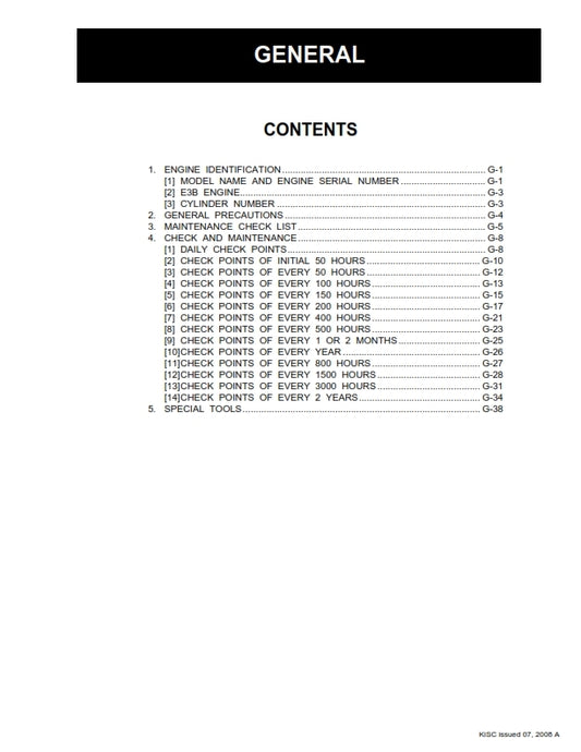 KUBOTA 03-M-E3B 03-M-DI-E3B 03-M-E3BG WORKSHOP MANUAL 2008 REPRINTED COMB BOUND