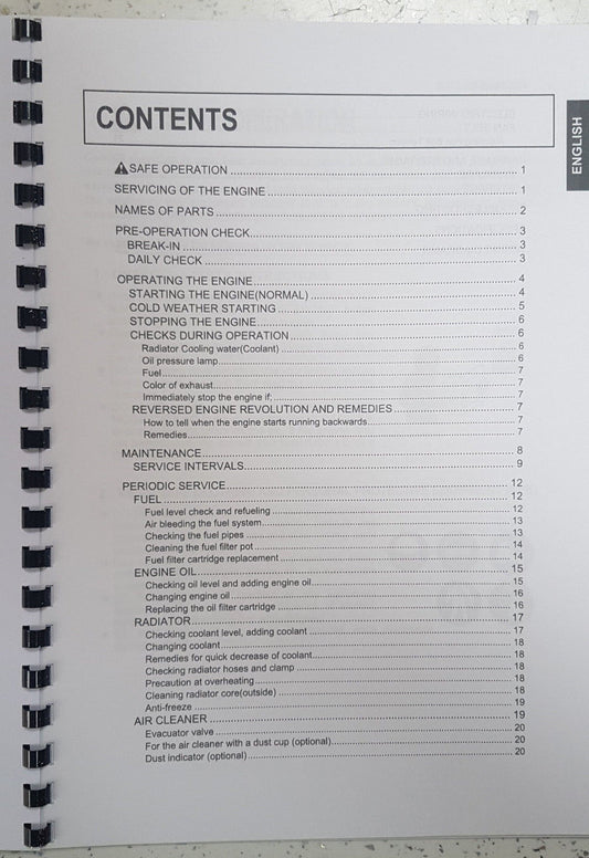 KUBOTA 70MM STROKE SERIES DIESEL ENGINE WORKSHOP MANUAL REPRINT COMB BOUND