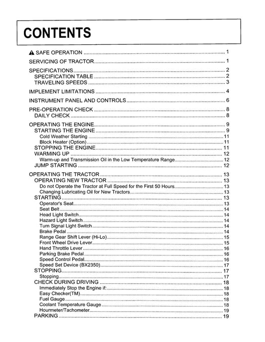 KUBOTA TRACTOR BX1850 BX2350 OPERATOR MANUAL REPRINTED COMB BOUND