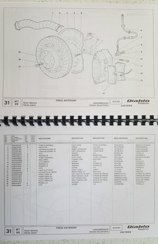 LAMBORGHINI DIABLO ROADSTER PARTS MANUAL 1996 - 1997 REPRINTED COMB BOUND
