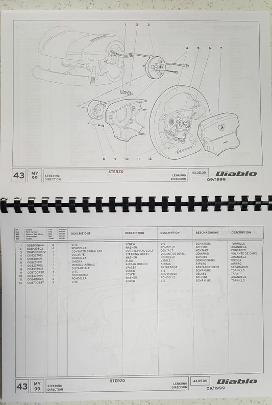 LAMBORGHINI DIABLO VT PARTS MANUAL 1994 - REPRINTED COMB BOUND