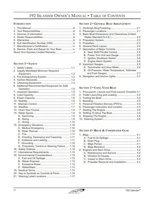 BAJA MARINE 192 ISLANDER BOAT OWNERS MANUAL REPRINTED COMB BOUND