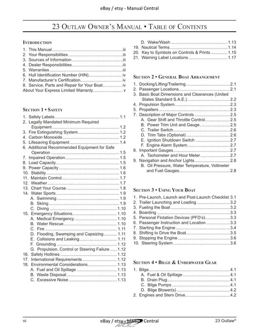 BAJA MARINE 23 OUTLAW BOAT OWNERS MANUAL REPRINTED COMB BOUND