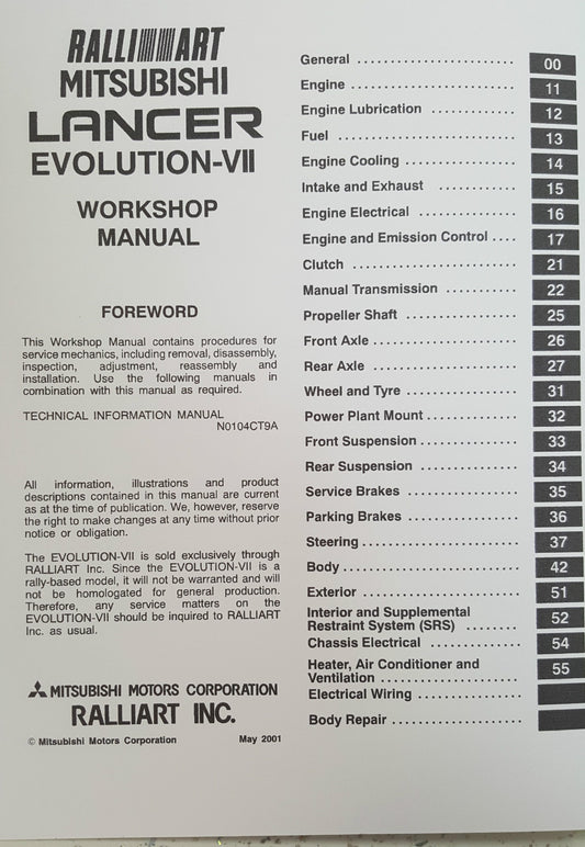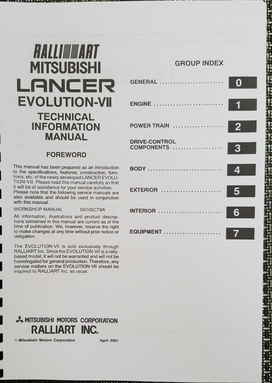 MITSUBISHI LANCER EVO VII TECHNICAL INFORMATION MANUAL REPRINTED COMB BOUND