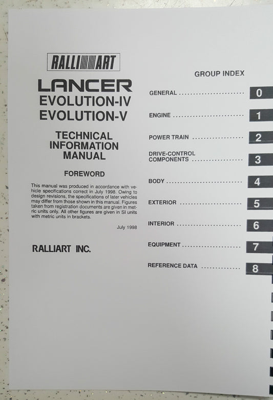 MITSUBISHI LANCER EVO IV / V / VI 4 5 6 TECHNICAL INFORMATION MANUAL REPRINTED
