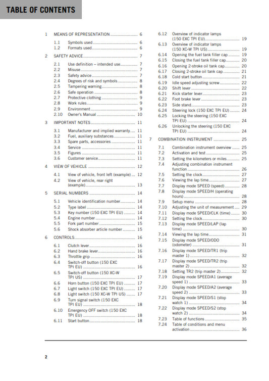 Official KTM 2020 150 EXC TPI & 150 XC-W TPI Owners Manual (Digital & Physical Copy)