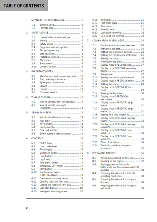 Official KTM 2020 250 EXC-F & EXC-F Six Days Owners Manual (Digital & Physical Copy)