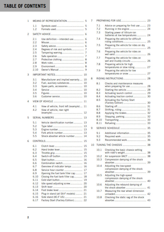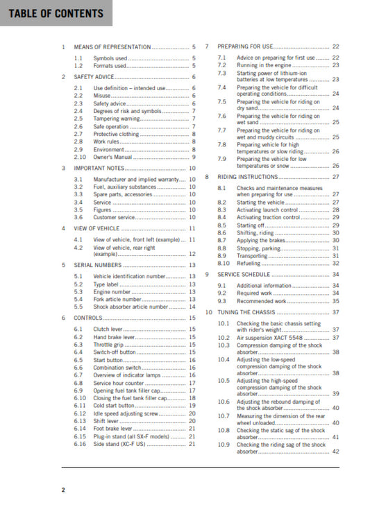 Official KTM 2020 250 XC-F, 250 SX-F & 250 SX-F Prado Owners Manual (Digital & Physical Copy)