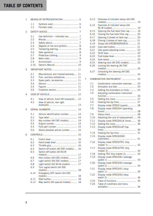 Official KTM 2020 250 & 300 XC-W, EXC Six Days, TPI & Erzbergrodeo Owners Manual (Digital & Physical Copy)