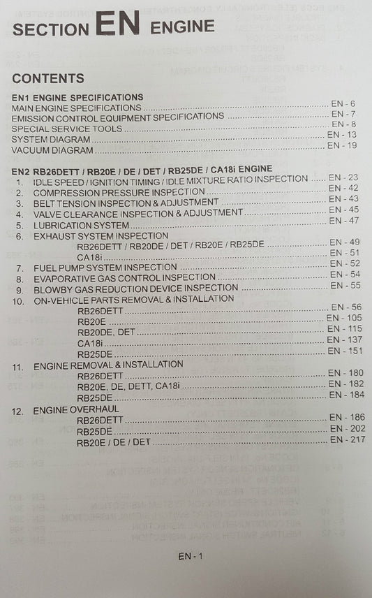 NISSAN R32 GTR SKYLINE WORKSHOP SERVICE MANUAL ENGINE RB26DETT REPRINTED
