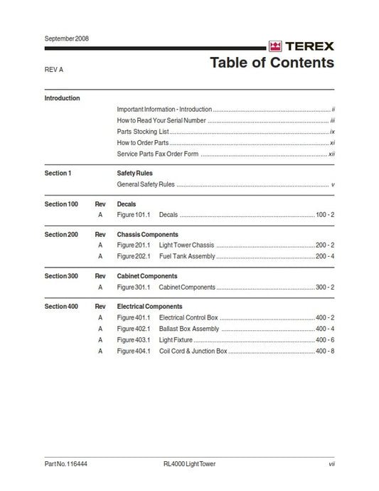 TEREX RL4000D2 PARTS MANUAL SEP 2008 EDITION REPRINTED COMB BOUND