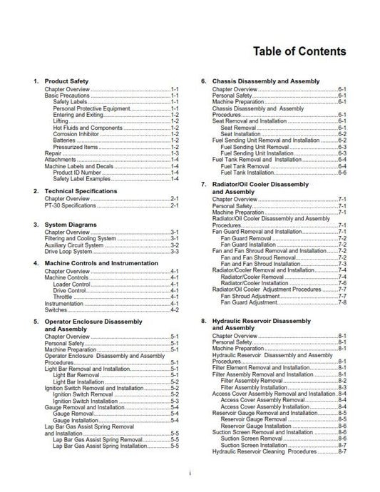 TEREX COMPACT TRACK LOADER PT-30 SERVICE WORKSHOP MANUAL 2010 EDITION REPRINTED