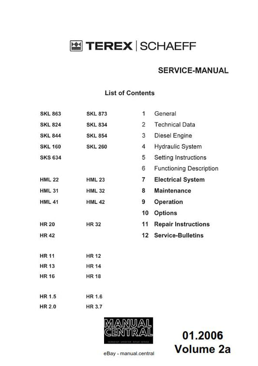 TEREX SCHAEFF SKL 854 160 260 634 WORKSHOP REPAIR SERVICE MANUAL 01 TO 06