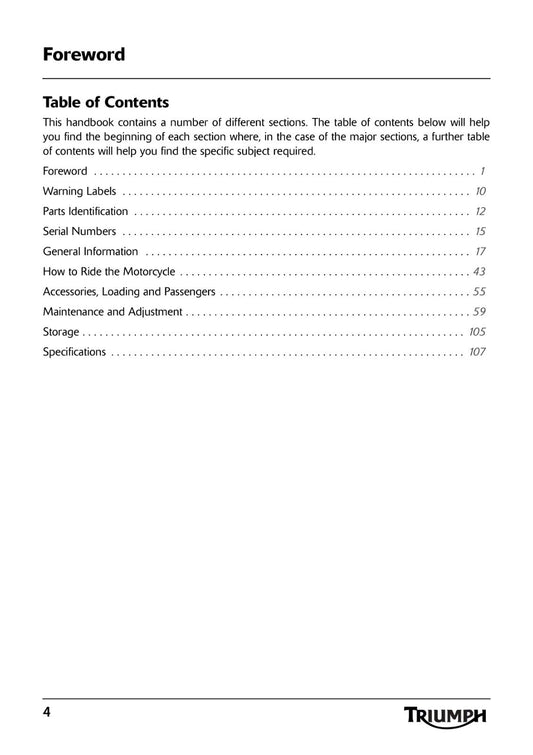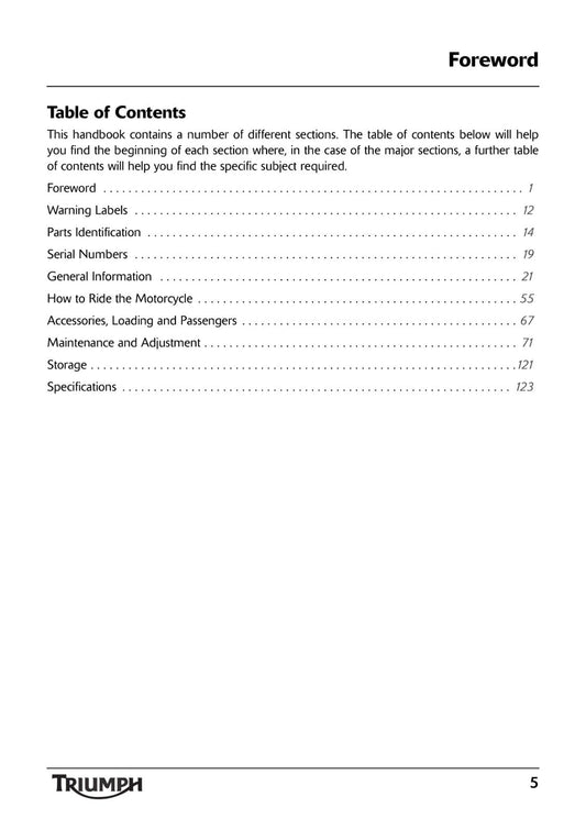 TRIUMPH OWNERS HANDBOOK MANUAL - 2007 TO 2012 - TIGER 1050 CCM