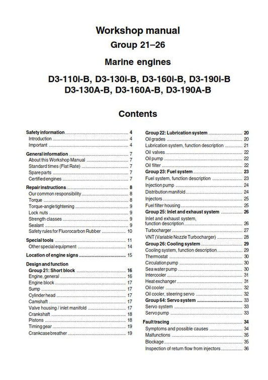 VOLVO PENTA GROUP 21-26 D3 ENGINE WORKSHOP MANUAL REPRINTED 07-2006