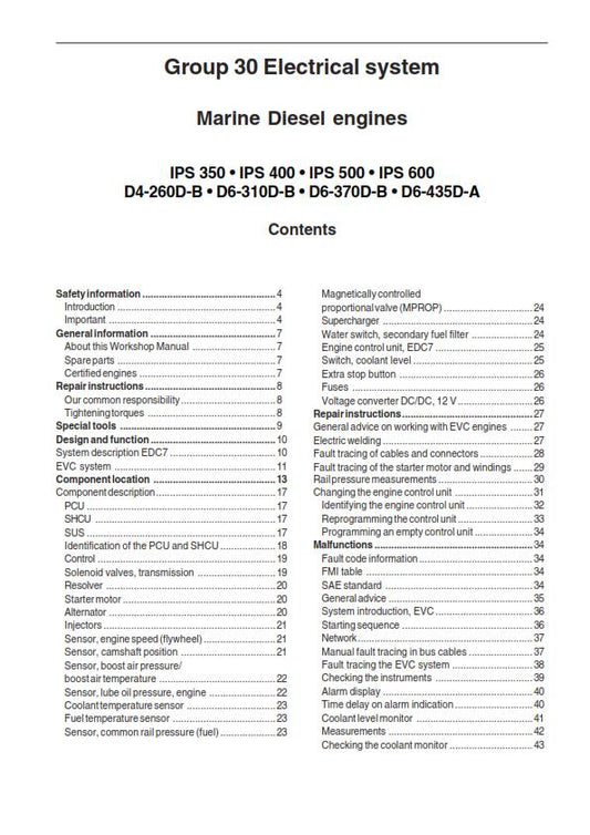 VOLVO PENTA GROUP 30 ELECTRICAL SYSTEM IPS 350 400 500 600 MANUAL REPRINTED 2007