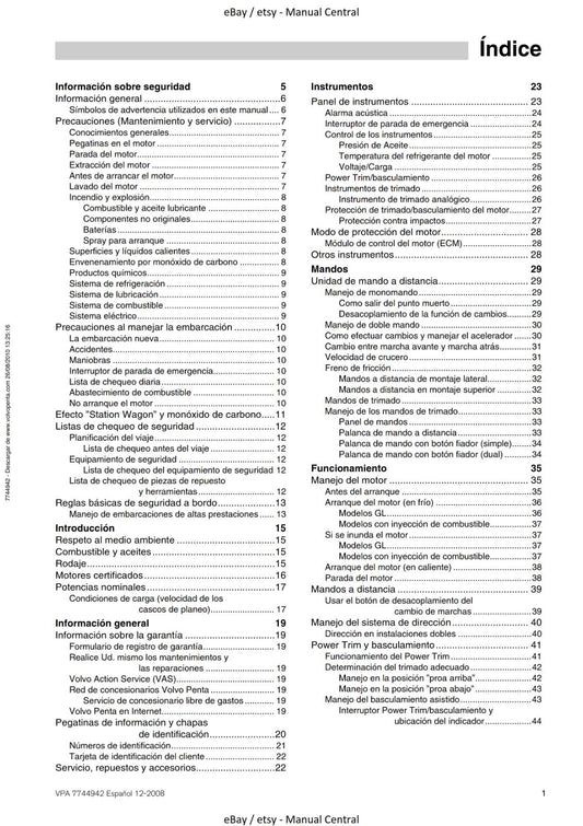 VOLVO PENTA LIBRO DE INSTRUCCIONES - 3.0L 4.3L 5.0L 5.7L 8.1L SX-A DPS-A XDP-B