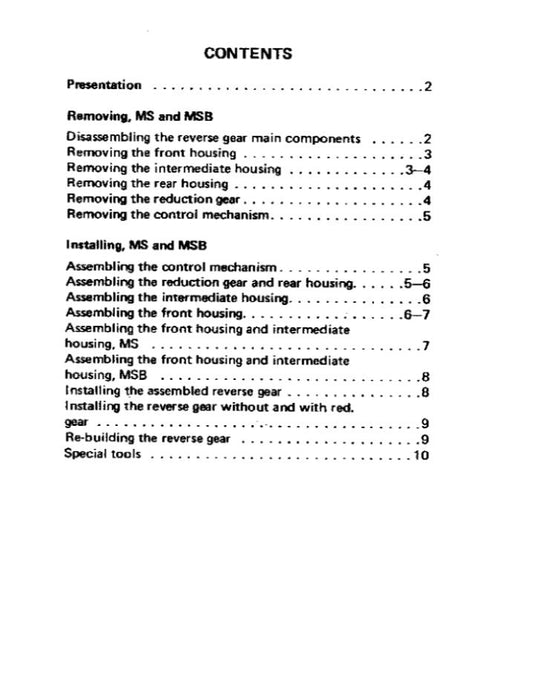 VOLVO PENTA REVERSE GEAR MONO SHIFT MS MSB OVERHAUL INSTRUCTIONS